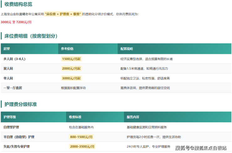 注重性价比的家庭:3000-7200元/月的价格区间在上海养老市场中定位普惠,性价比优势明显。