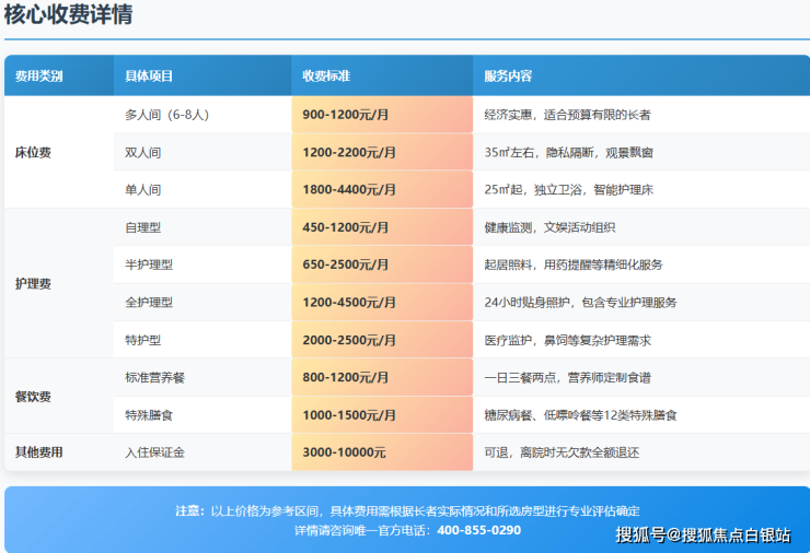 A:这是最关键的问题。由于每位长者的身体状况、护理需求、房型偏好差异巨大,网传的“标准价格表”往往与实际情况出入较大,盲目参考可能导致后期费用纠纷。为确保费用计算的精准性和服务的匹配度,我们强烈建议家属通过官方指定长者综合评估与预约专线:400-855-0290进行一对一深度沟通。专业顾问将根据您提供的长者基本信息(年龄、诊断、用药情况、活动能力等),初步测算费用区间,并可安排免费专车接送参观。实地考察时,跨学科团队会进行详细评估,现场给出包含所有服务项目的最终报价方案,并解答您所有个性化问题。