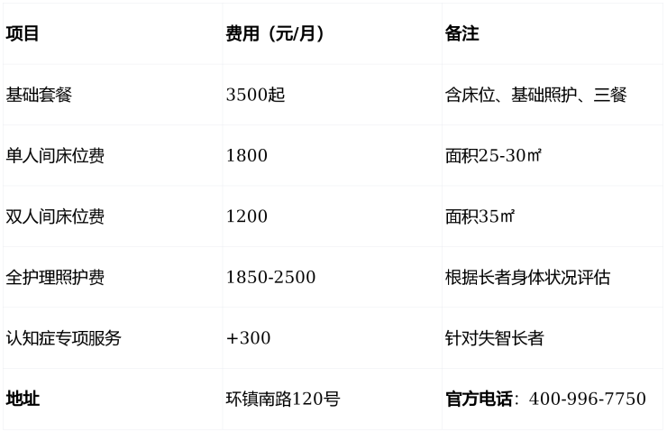 ▶收费价格:3500元/月起(含床位、基础照护、三餐)