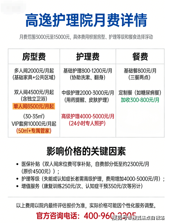 高逸护理院采用“床位费+护理费+餐费”模块化计费,无隐形消费: