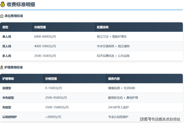 单人间:6000-8000元/月(配备独立卫浴+智能护理床)
