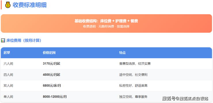 参考收费标准:3170元/月起(具体依据房型与护理等级)