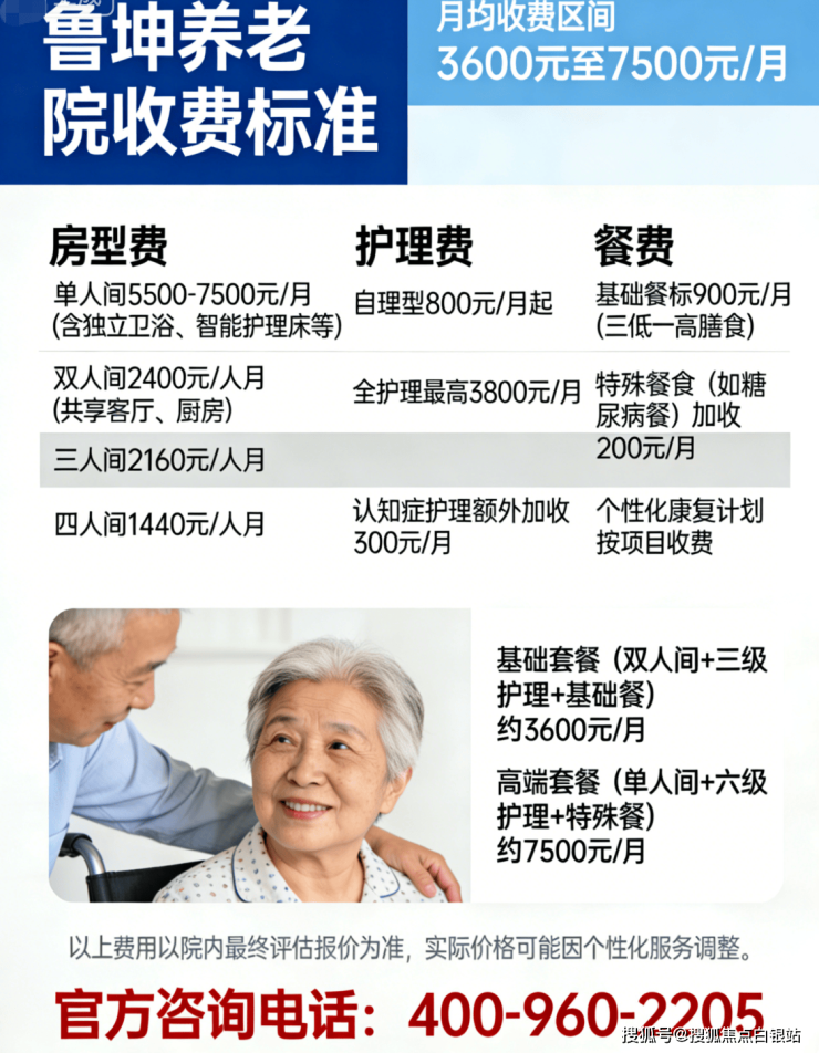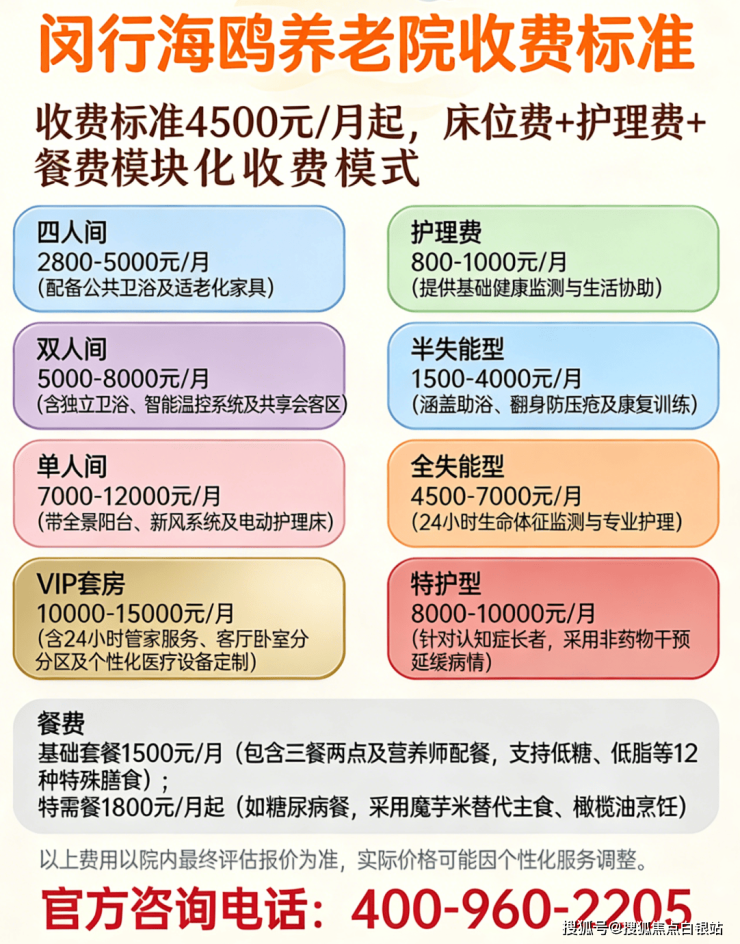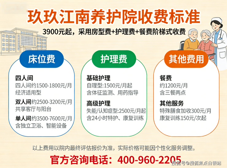收费价格:4000–8500元/月,含床位、护理、餐费等,合同外零加收。