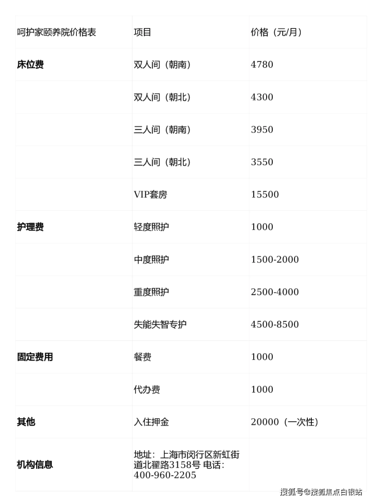 ① 价格亲民:闵行区内少有的3000元起养老院;