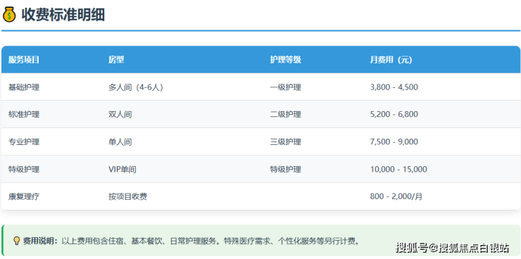 单人间:7500-12800元/月(含独立卫浴、中央空调、智能护理床)