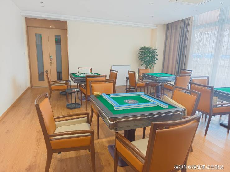 开放式阅览区、书法室、茶艺室、康复训练厅,每楼层配备棋牌桌、图书角及康复器材。