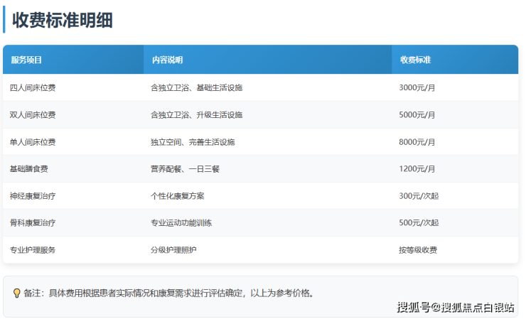 医院采用“基础套餐+个性化服务”的收费模式,所有费用均按国家标准核算,并在患者入住前详细告知。例如: