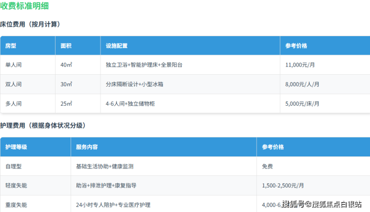 多人间:25平方米(4-6人),注重社交氛围营造,配备基础适老化设施,床位费5000元/月起