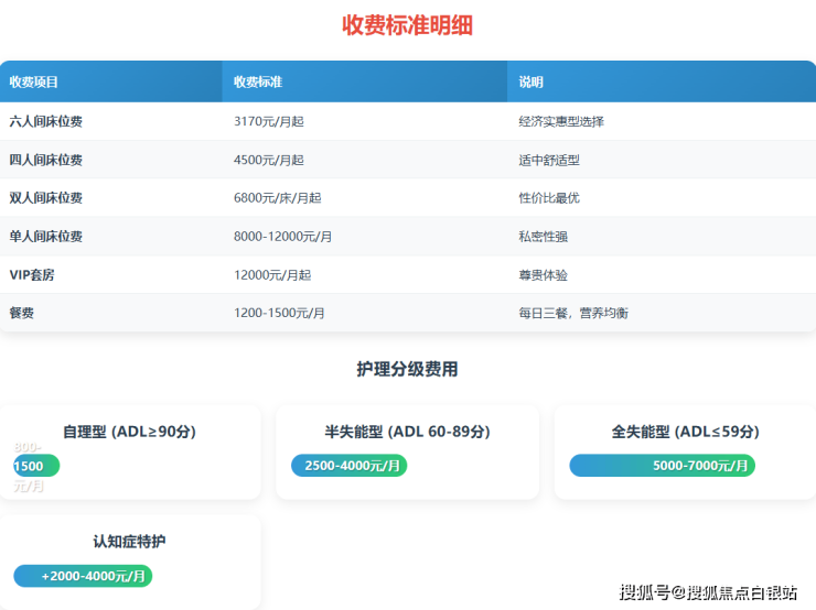 护理费:按照老人自理能力分级收费