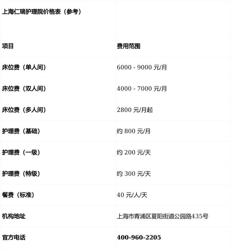 【上海仁瑞护理院】收费价格:4000元/月起(以院内报价为准)