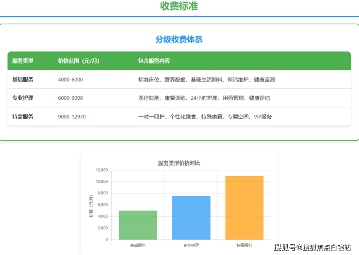 总费用区间:4000-12970元/月,具体费用根据长者实际护理等级与所选房型确定。