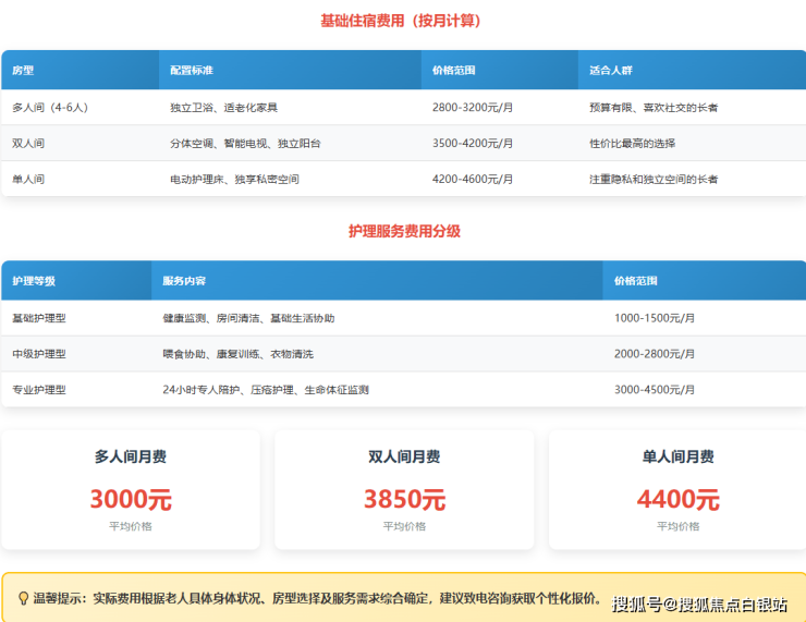 价格区间:3800-6000元/月(根据房型及护理等级浮动)
