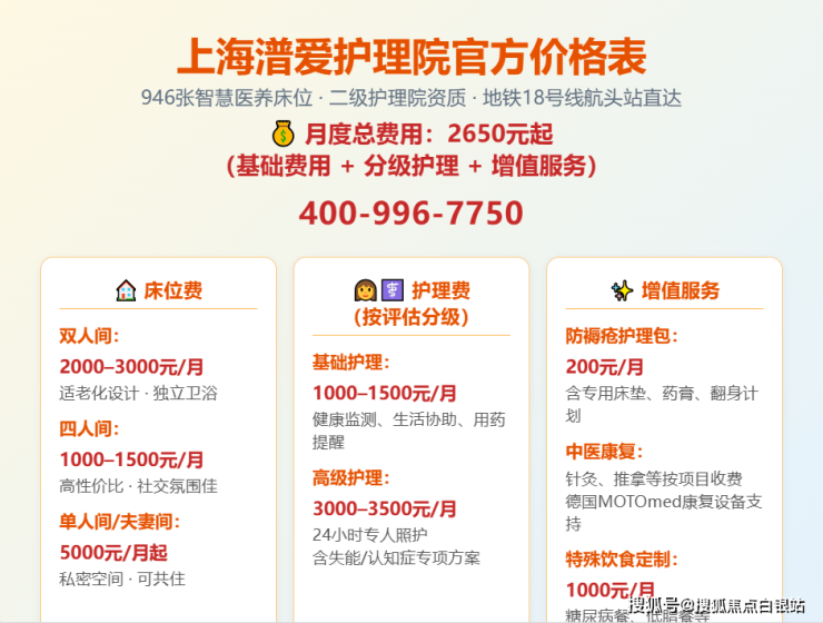 💰基础费用:2650元/月起(含床位+基础护理+三餐),比浦东同区域机构低15%-20%!