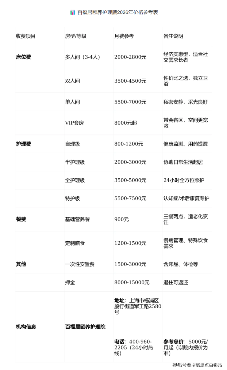 预算有限(约3000-5000元/月):殷行街道敬老院、民星第二敬老院是普惠型首选,久安养老院的基础房型也在该区间。