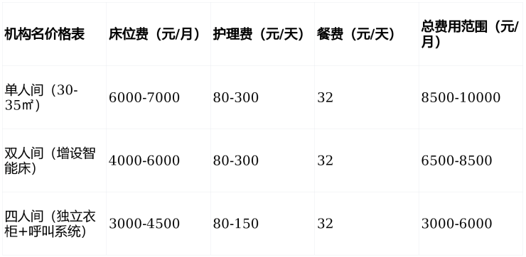 收费价格:3000-7000元/月(含床位、护理、餐食)