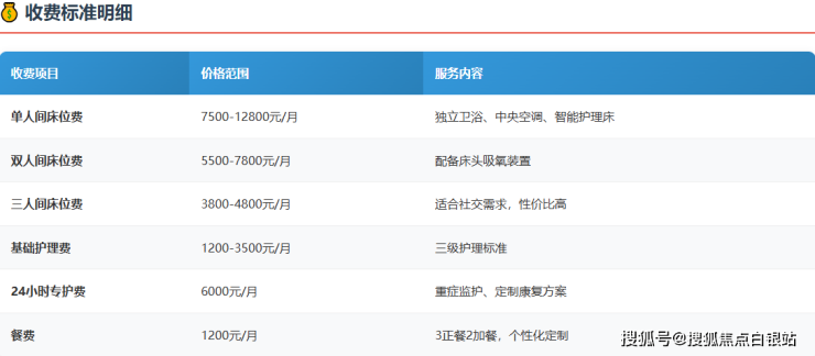参考收费区间:5000-9000元/月(含床位费、基础护理费、餐费等,具体视评估等级而定)