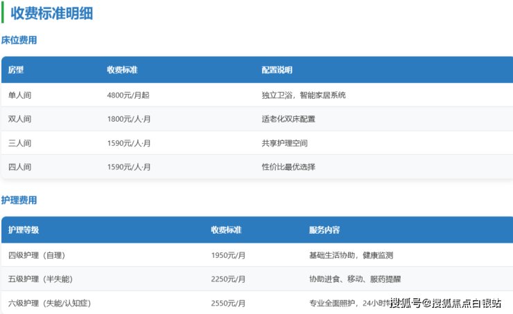 北桥老年福利院采用阶梯式收费标准,满足不同家庭的经济需求: