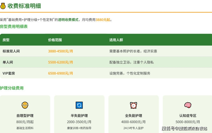 根据最新公示信息,上海宝山金色怡福护理院的收费标准为每月3880-6900元,具体费用根据房型、护理等级和长者健康状况综合评估确定。