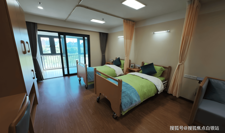 ① 居住空间:全屋无障碍设计,走廊宽度1.8米,单人间配备43寸智能电视、独立阳台,双人间增设语音及拉绳双模呼叫装置。