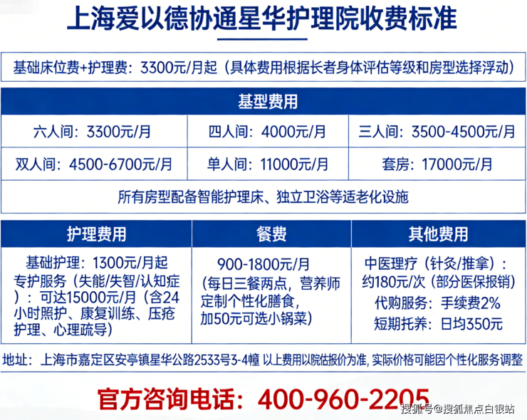 温馨提示:最准确的费用需结合老人实际身体状况和房型评估。建议拨打官方电话 400-960-2205 获取个性化费用明细解读。