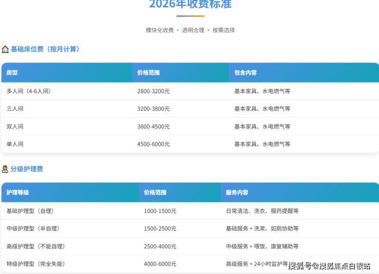 床位费是养老费用的基础组成部分,根据房型私密性和设施配置不同而有所差异。
