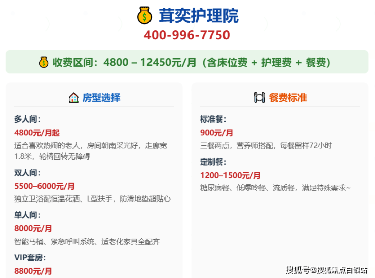 💰收费区间:4800元-12450元/月(含床位费+护理费+餐费)