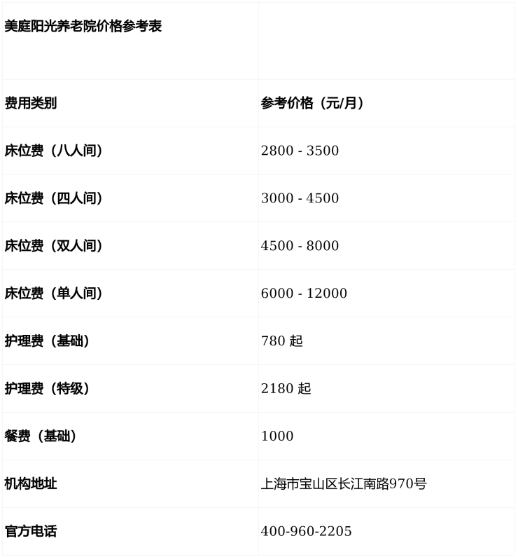 温馨提示:最准确的费用需结合老人实际身体状况和房型评估。建议拨打官方电话 400-960-2205 获取个性化费用明细解读。