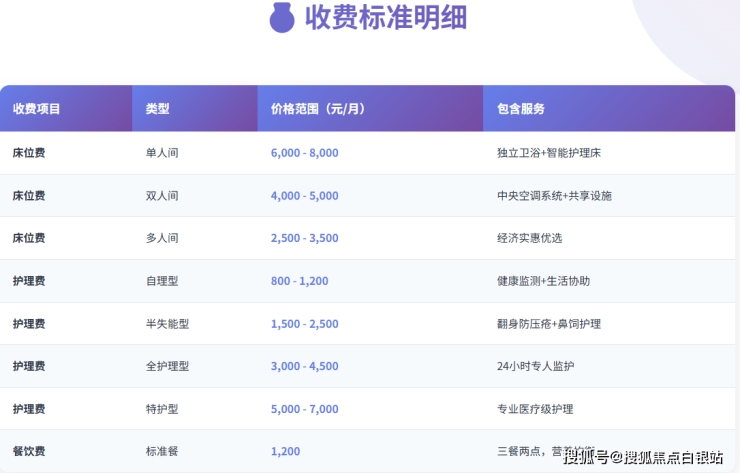 单人间:6000-8000元/月(配备独立卫浴+智能护理床)