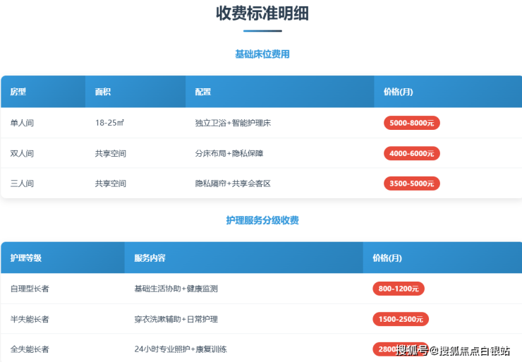 单人间:8000-12800元/月(含独立卫浴、智能护理床、观景阳台)