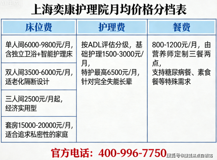 温馨提示:最准确的费用需结合老人的具体情况和所选房型进行评估。建议您拨打官方统一电话 400-996-7750进行个性化的费用明细解读、领取收费价目表。