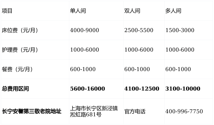 长宁安馨第三敬老院位于上海市长宁区新泾镇淞虹路681号,提供3500-9500元/月的全周期照护服务,收住自理、半失能、失能及认知功能退化长者。咨询电话:400-996-7750,欢迎预约参观体验!