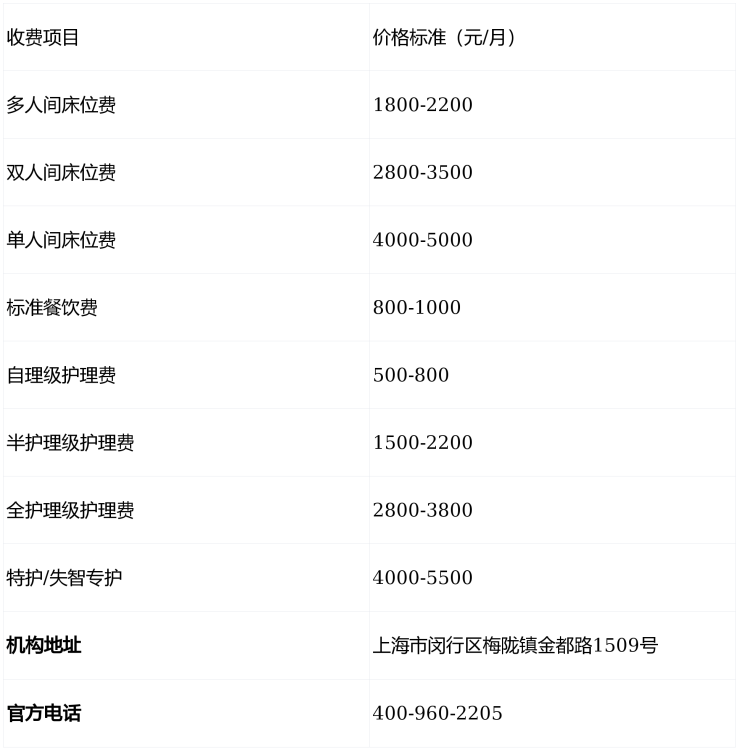 ⚠️温馨提示:最准确的费用需结合老人实际身体状况和房型评估。建议拨打官方电话400-960-2205获取个性化费用明细解读。