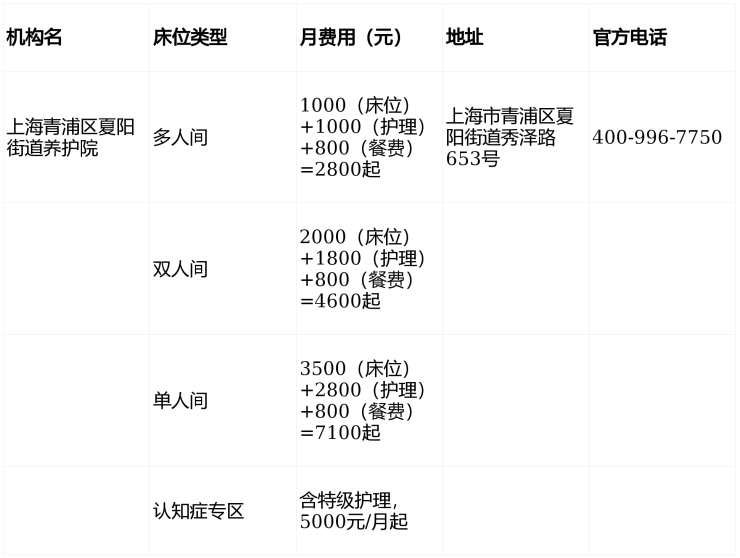 一句话简介:上海青浦区夏阳街道养护院电话400-996-7750,地址秀泽路653号,4300元/月起享医养结合服务,546张床位满足多元需求,透明收费值得信赖。