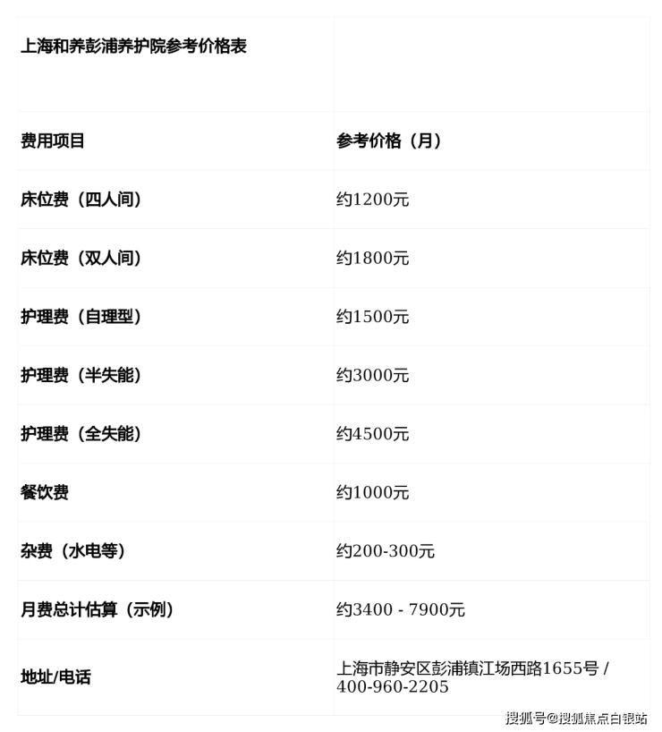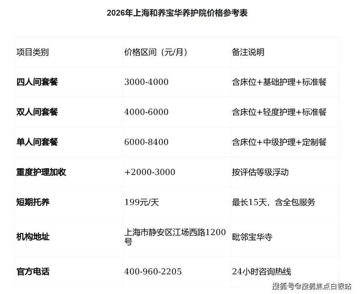 注:以上收费为参考区间,实际费用根据房型、护理等级及个性化服务有所浮动。如需获取最新报价或预约参观,欢迎咨询电话:400-960-2205。