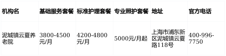 泥城镇云夏养老院电话:400-996-7750,地址:上海市浦东新区泥城镇云夏路118号,3800元/月起提供分级医养服务,收住60岁以上自理、半自理及失能失智长者,248张床位满足多样化需求,是临港新片区高性价比养老优选!