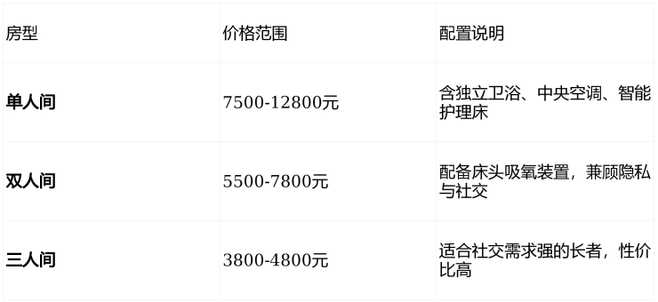 参考价格范围:5000-9000元/月(根据房型和服务等级)