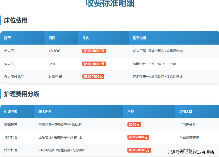 单人间:9000-18000元/月(30㎡带独立卫浴、智能护理床)