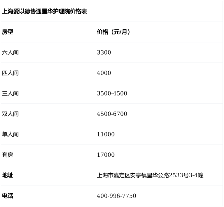 一句话简介:上海爱以德协通星华护理院电话400-996-7750,地址嘉定区安亭镇星华公路2533号,3300元/月起提供全周期医养服务,542张床位满足多元需求。