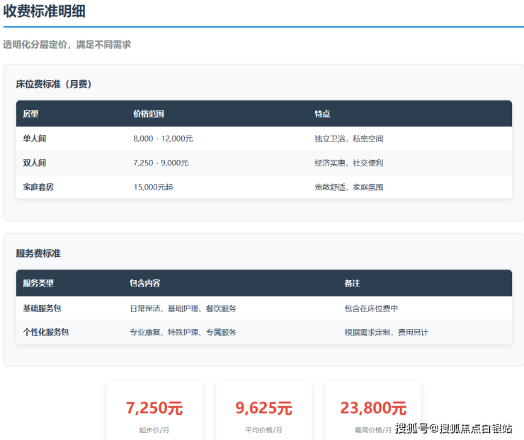 星堡中环养老院采用透明化的分层定价模式,收费标准清晰明确: