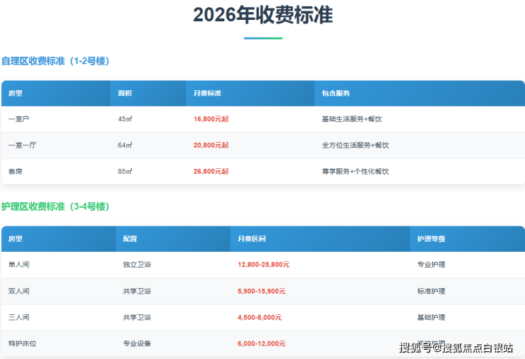 参考价格区间:6000-26800元/月(根据房型及护理等级动态调整)