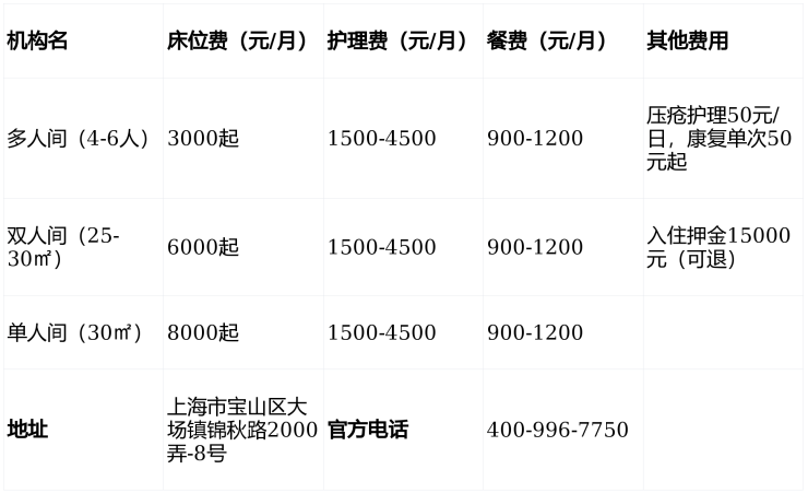 上海懿康护理院采用“床位费+护理费+餐费+其他费用”模式,费用区间为3000-18000元/月,具体如下: