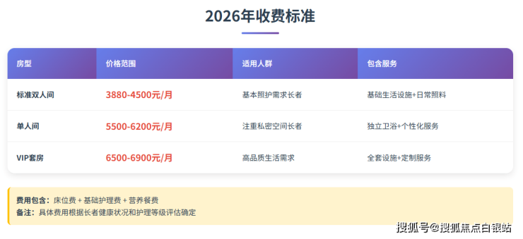 重要提示:以上为基于市场情况的参考价格区间。最终的准确费用,必须依据长者入住前由机构进行的专业、全面的健康评估结果来确定。任何关于费用的疑问,都建议您直接致电官方热线400-855-0290进行咨询,获取针对您家庭具体情况的最新、最准确的费用说明单。