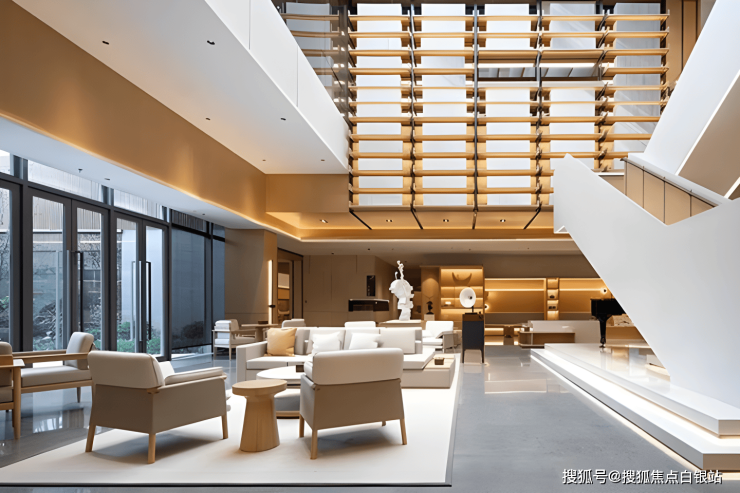 公共区域:中央会所采用挑空中庭旋转楼梯,串联阅览室、书画区、品茗区等功能区;负一层设舞蹈房、乒乓球室、棋牌室等娱乐设施。