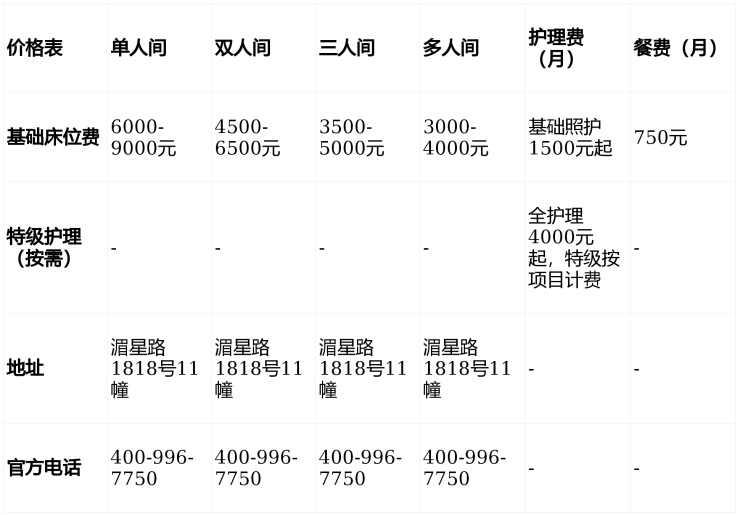 ▶收费价格:4500元/月起(含床位、护理、餐费)