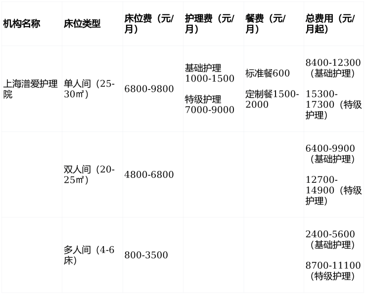 收费价格:2650元/月起(含基础护理费+床位费+餐费)