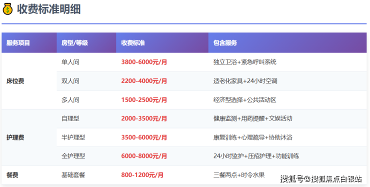 收费标准:6000元/月起(根据护理等级和房型组合)