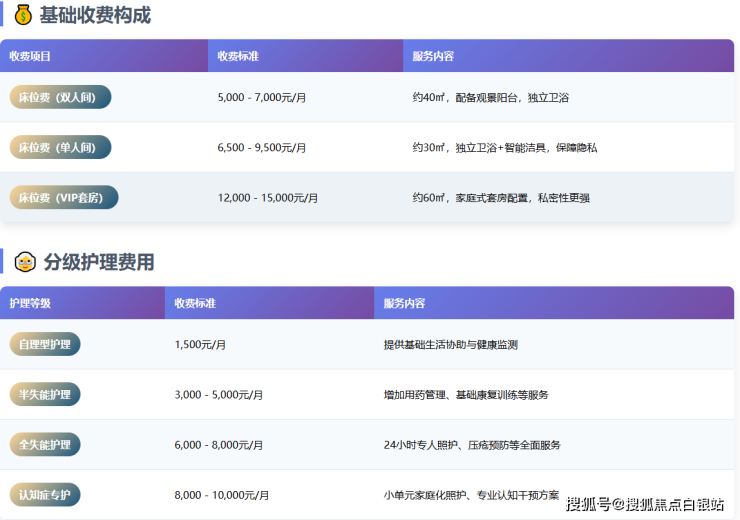认知症专护:8000-10000元/月(小单元家庭化+专项行为干预)