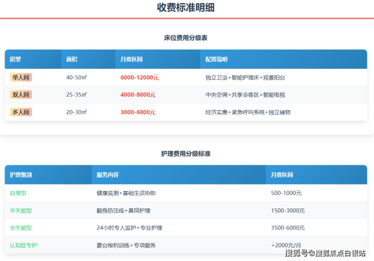 单人间:6000-8000元/月(配备独立卫浴+智能护理床)