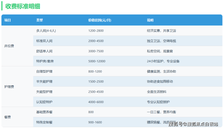 自理型:800元/月(健康监测、用药提醒、活动组织)