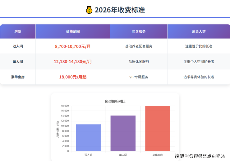 双人间:月费范围为12,000元至18,000元。适合夫妻同住或愿意与他人共享空间以降低成本的老人。